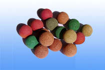 ·普通膠球 普通膠球表面光滑,主要用于可再剝皮磨打后制成標(biāo)準(zhǔn)剝皮膠球,一些發(fā)電廠因管道無(wú)較硬沉積才定購(gòu)光膠球,一般用于不銹鋼管。但對(duì)銅管使用的效果不佳。 主要用于去除軟性污垢,適用于冷卻水應(yīng)用場(chǎng)合,淤泥、粘泥、泥砂等,適用于銅管換熱器。 ·金剛砂膠球 金剛砂膠球分為全金剛砂膠球和半金剛砂膠球兩種。金剛砂膠球適用于清除各種結(jié)垢沉積較多的管道,但對(duì)管子有傷害,一般不長(zhǎng)期使用,特別銅管更慎用。 有效去除硬質(zhì)結(jié)垢,如:碳酸鈣。適用于鋼管、不銹鋼管換熱器。
